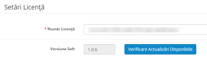 În această secțiune puteți verifica numărul de licență, versiunea platformei și disponibilitatea actualizărilor.