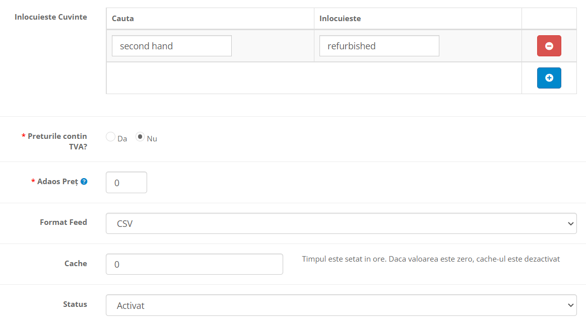 Status - pentru a putea edita Feed-ul acesta trebuie sa fie pe pozitia "Activat"