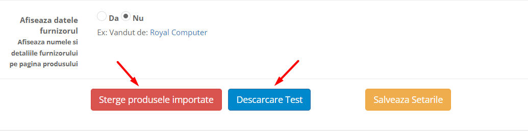 - Șterge produsele importate – șterge toate produsele importate anterior de la furnizor