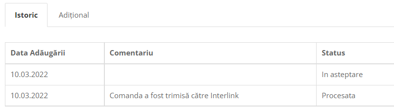 **Nota: Detaliile de mai sus vor fi disponibile in permanenta. Pentru a le afisa se va apasa din nou butonul de trimitere comanda catre furnizor.