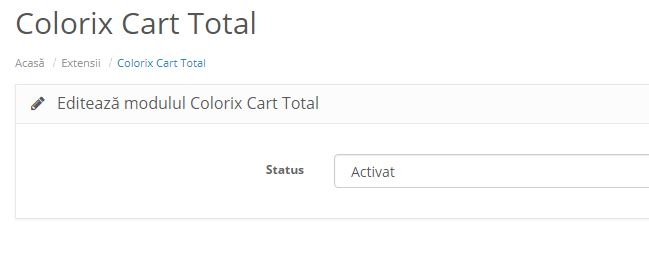 - Accesați Extensii -> Extensii -> Module -> Instalați Colorix Cart Total, după care îl editați și declarați status-ul Activat.
