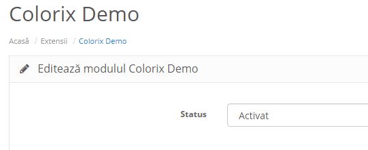 Accesați Extensii -> Extensii -> Module -> Instalați Demo Colorix, după care îl editați și declarați status-ul Activat.
