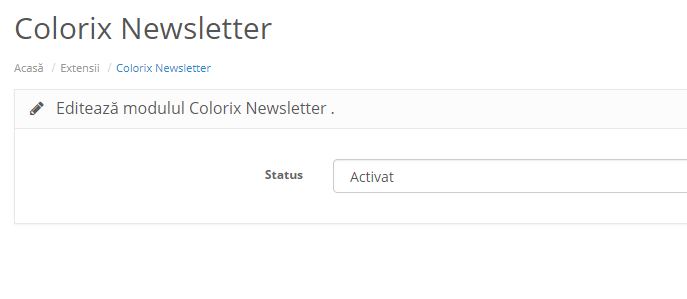 Accesați Extensii -> Extensii -> Module -> Instalați Colorix Newsletter, după care îl editați și declarați status-ul Activat.