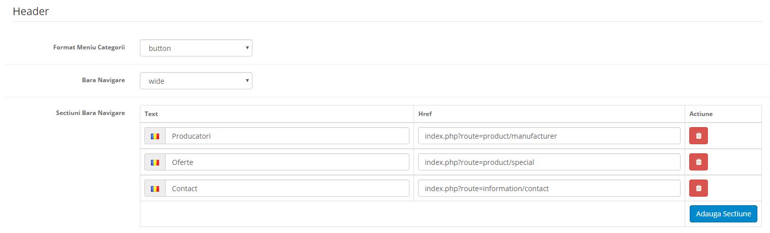 De asemenea puteți alege între meniu de categorii afișate în linie pe bara de navigare sau sub forma de buton (opțiune care este setată în mod implicit).