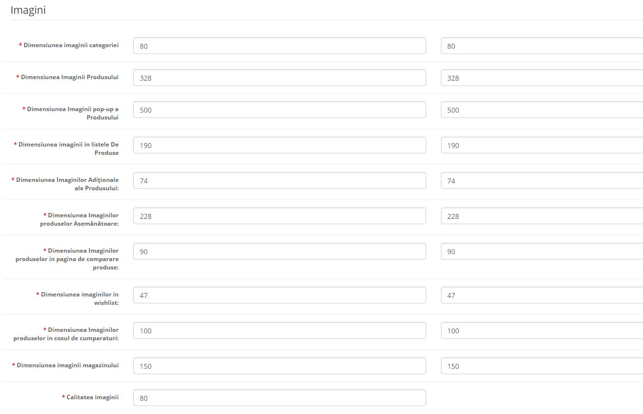 Aici puteți selecta numărul de produse ce apar în pagină, lungimea descrierii scurte a produsului, și pagina de informații pentru garanții.
