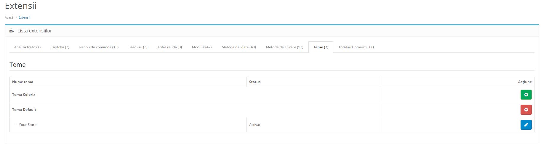 Pentru activarea temei, accesați meniul Extensii -> Extensii -> Teme. Apăsați butonul instalează aflat în dreptul "Tema Colorix".